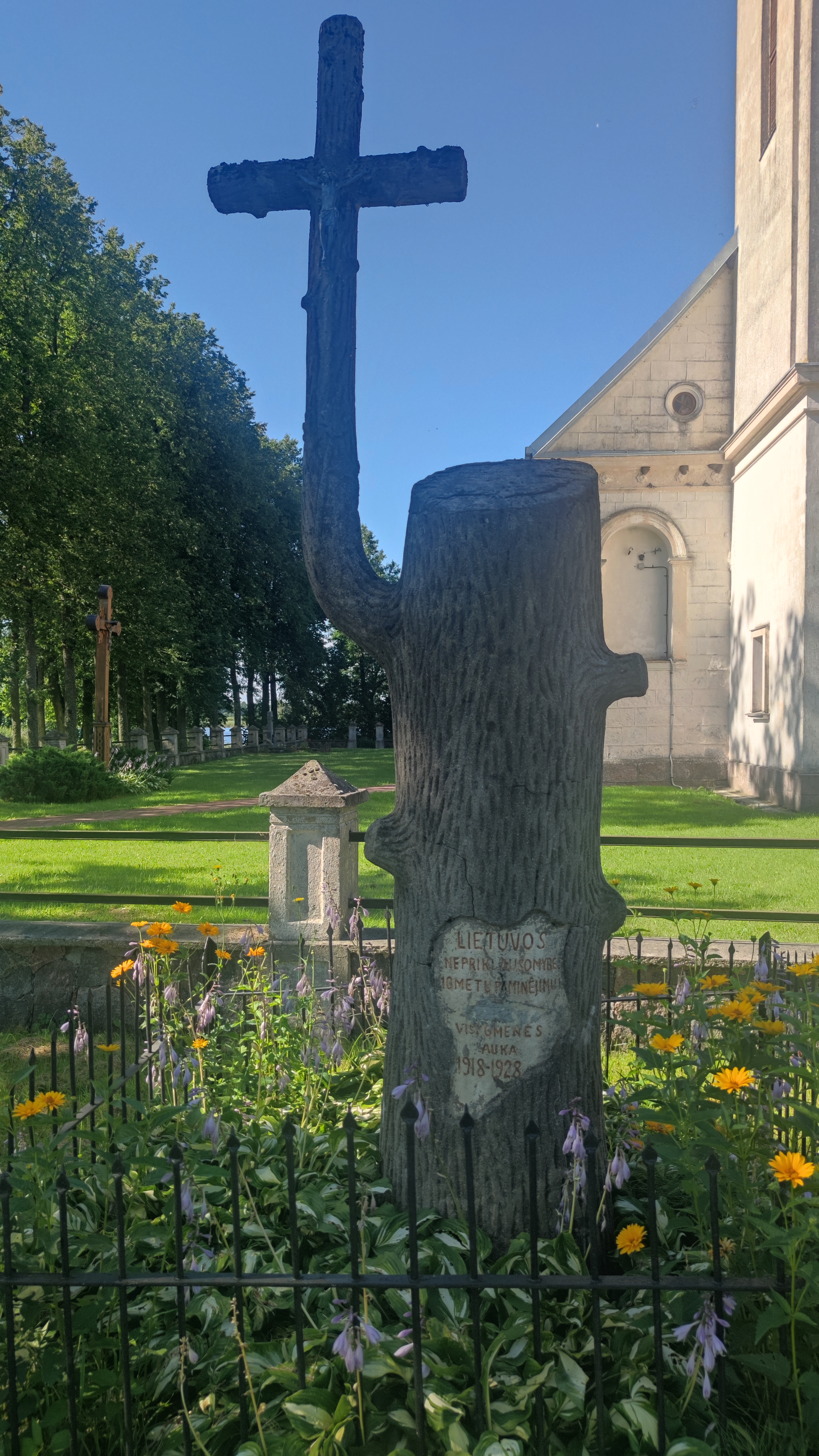 Priešais bažnyčią – nedidelis skveras. Apžiūrime paminklą savanoriams ir Vyčio Kryžiaus kavalieriams.
